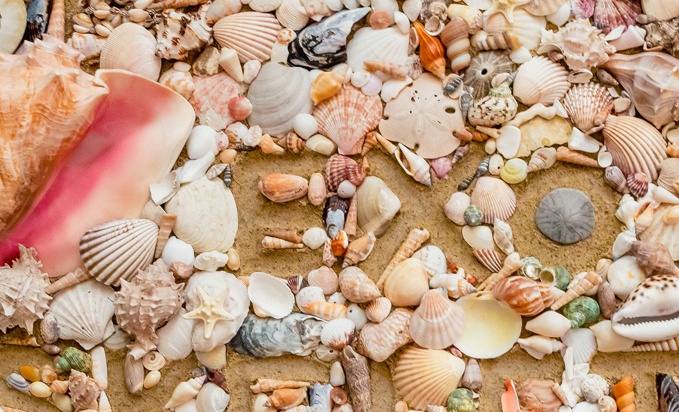 This expressive typography piece explores the concept of an exoskeleton through real-world materials. The word “Exoskeleton” is revealed in sand, while hundreds of shells cover the surrounding surface, emphasizing how structure exists on the outside. The installation was created indoors on a snowy winter day, spreading forty pounds of sand and arranging hundreds of shells to bring the concept to life, blending tactile experimentation with visual storytelling.