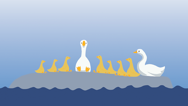 This animated title sequence reimagines the 1964 comedy Father Goose in a flat, 1960s-inspired style. Hand-drawn illustrations created in Blender’s Grease Pencil are animated in After Effects, bringing a playful, mid-century aesthetic to life. The sequence follows the film’s main storyline through a cast of geese: a goose piloting a launch, traveling by dinghy to fetch a woman and goslings, a plane flying overhead, a chase through the jungle, and a comedic finale atop an overturned dinghy. The animation concludes with the geese in a framed family portrait as the title “Father Goose” appears on screen, adding humor and charm to the narrative.
