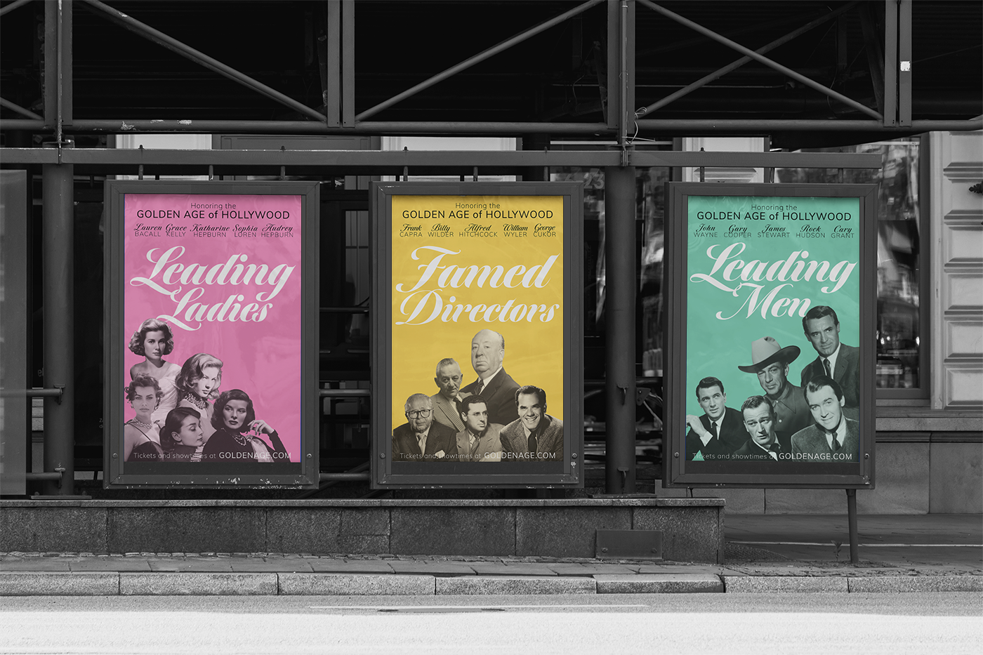 This series of film festival posters celebrates the glamour and nostalgia of Hollywood’s golden age. Each design captures a distinct facet of the era—Leading Ladies in bubblegum pink, Leading Men in mint green, and Famed Directors in sunny yellow. Classic Hollywood typefaces and softly tinted black-and-white portraits evoke timeless sophistication, bringing the legends of cinema into a modern, vibrant light.